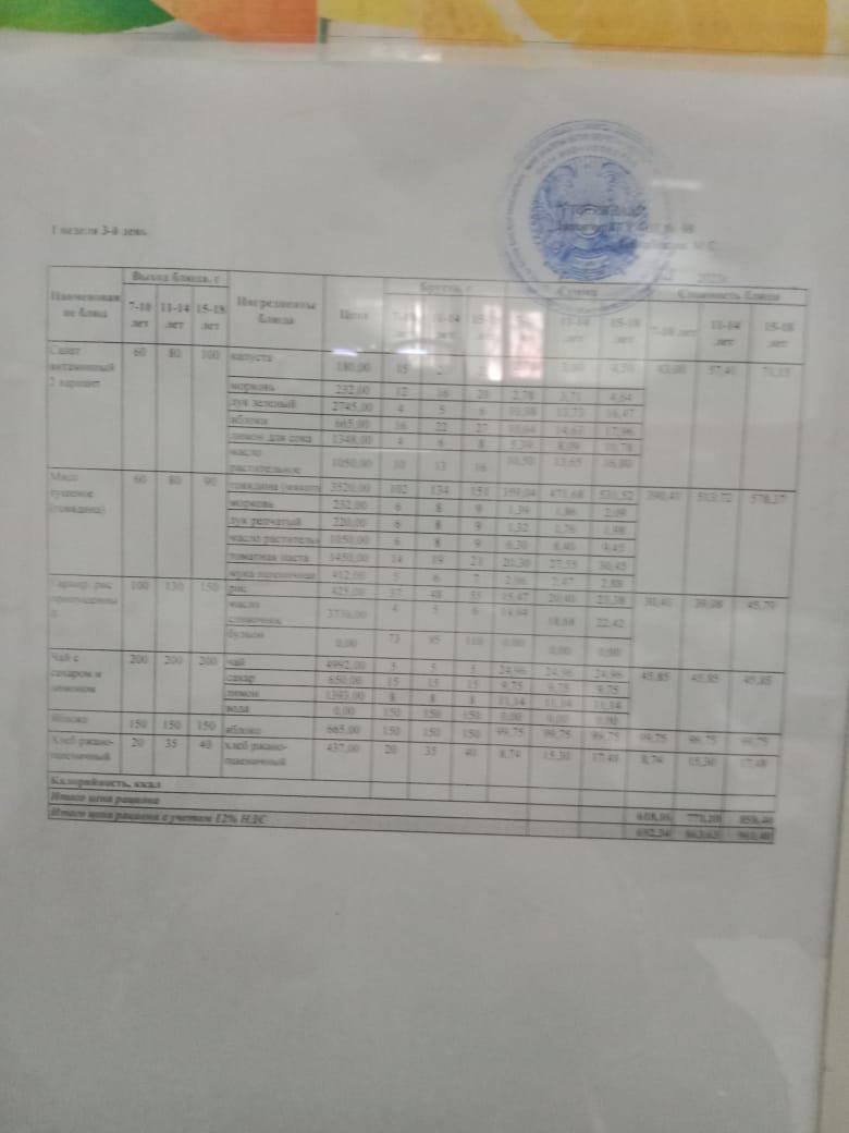 1 апта 3- ші күннің ас мәзірі