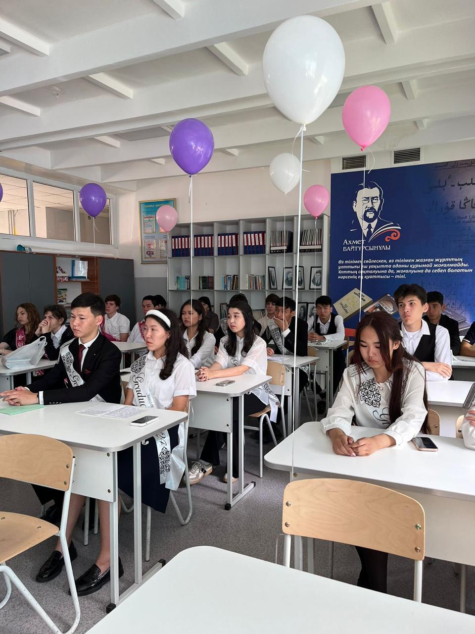 9, 11 сынып оқушыларына ҚР Оқу-ағарту министрінің жалпыреспубликаның білім алушыларына құттықтау сөзін тыңдау мен республика бойынша балаларының жетістіктері туралы видеоролик қойылды. Сонымен қатар, 9, 11 сыныптың түлектері үшін «Мен. Мектеп. Ұстаз» тақырыбында мектеп қабырғасындағы балалық шақтан болашаққа қадамы туралы өз ойларын эссе жазу ұсынылды.