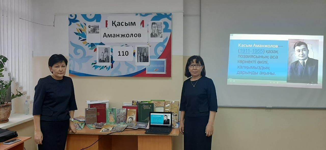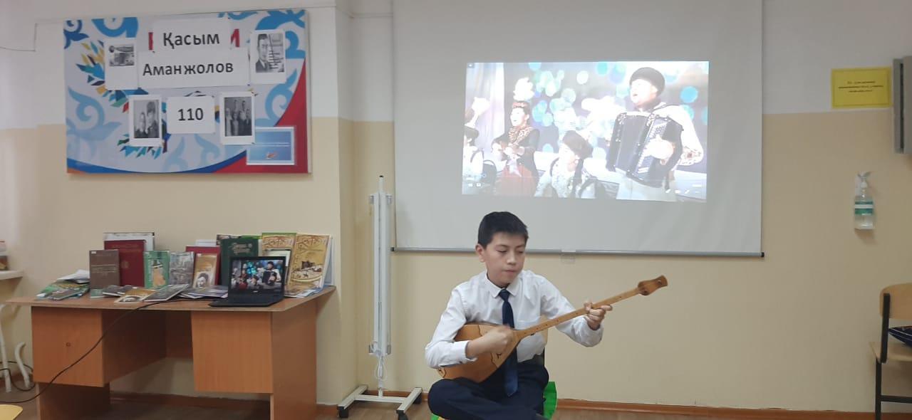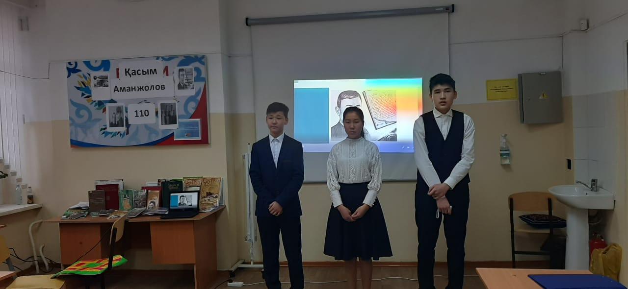 " Оқуға құштар мектеп" аясында 9- сынып оқушыларының Қасым Аманжоловтың 110 жылдығына арналған" Өртке тиген дауылдай өр ақын" атты тақырыптағы іс- ша