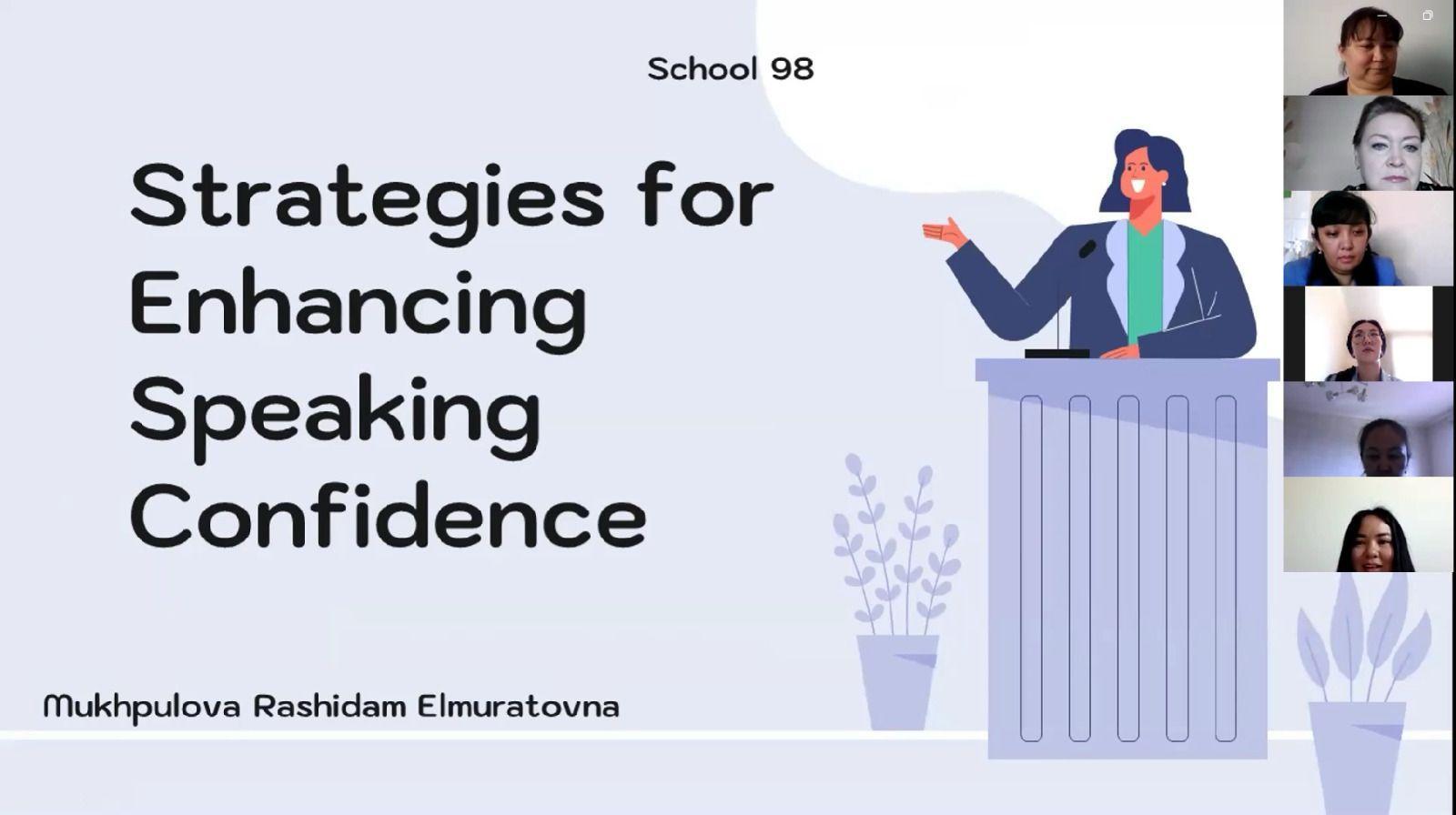Вебинар мұғалімдерге тәжірибе алмасуға тамаша мүмкіндік болды. Оған біздің тамаша ұстазымыз 👩🏫Мухпулова Р.Э., ағылшын тілі мұғалімі, “Strategies for enhancing speaking confidence“ тақырыбымен қатысты.