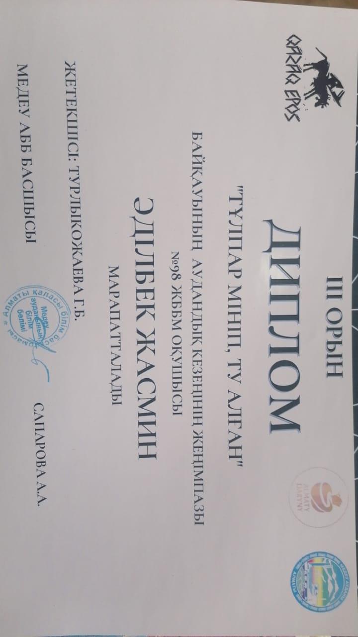 Әділбек Жасмин "Тұлпар мініп,Ту алған" байқауының жеңімпазы