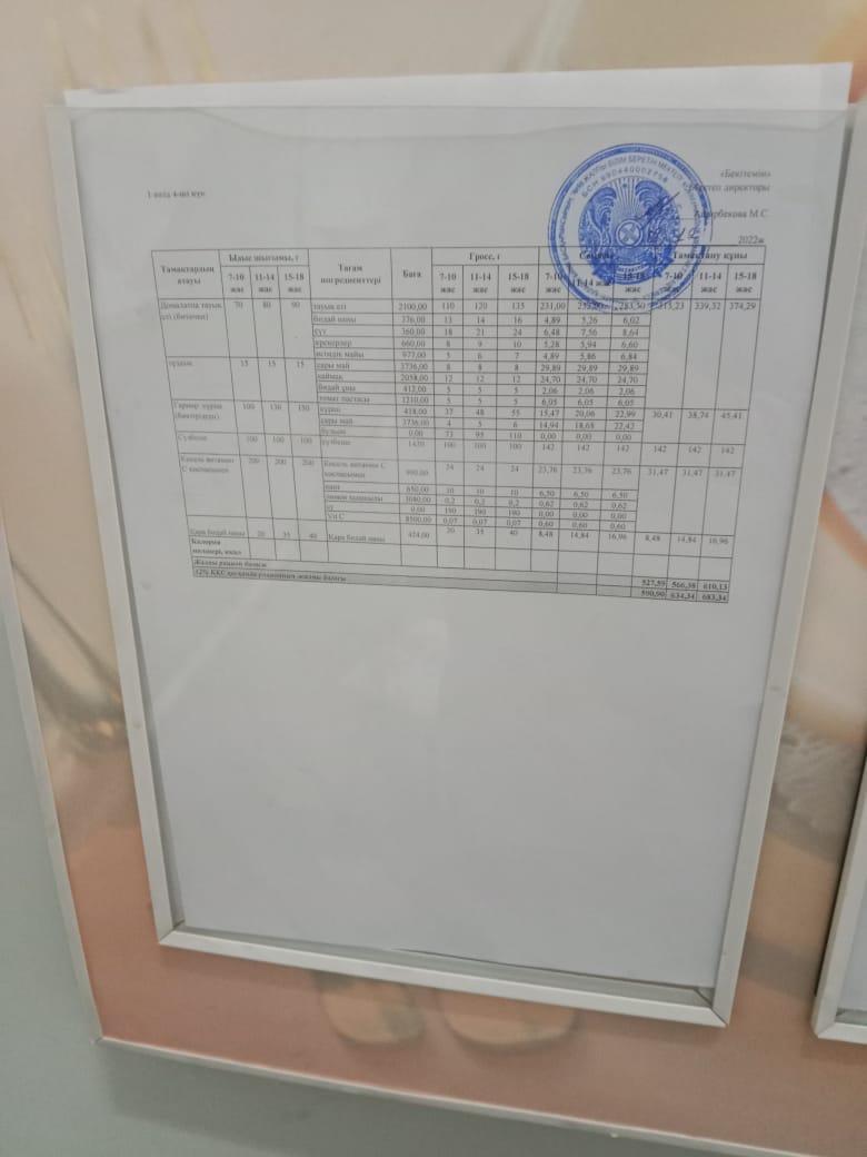 1 апта 2 - ші күннің ас мәзірі.