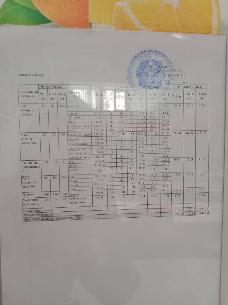 1 апта 3 күннің ас мәзірі.