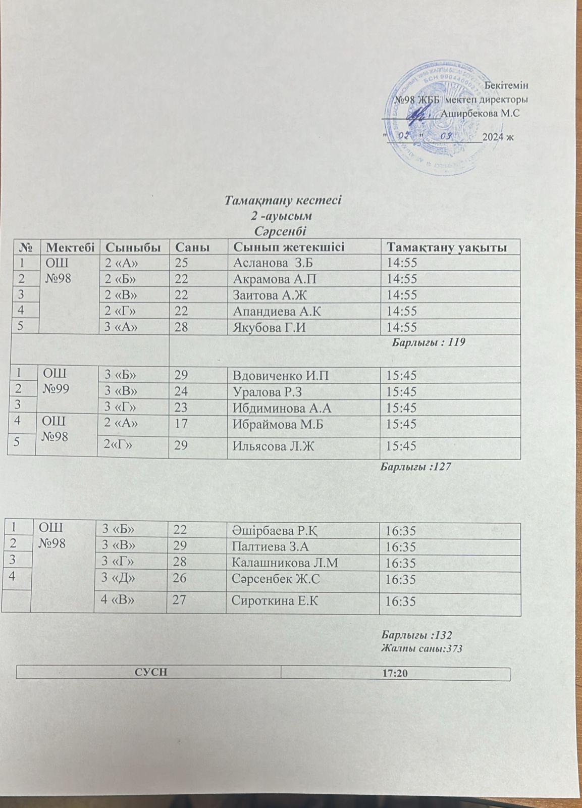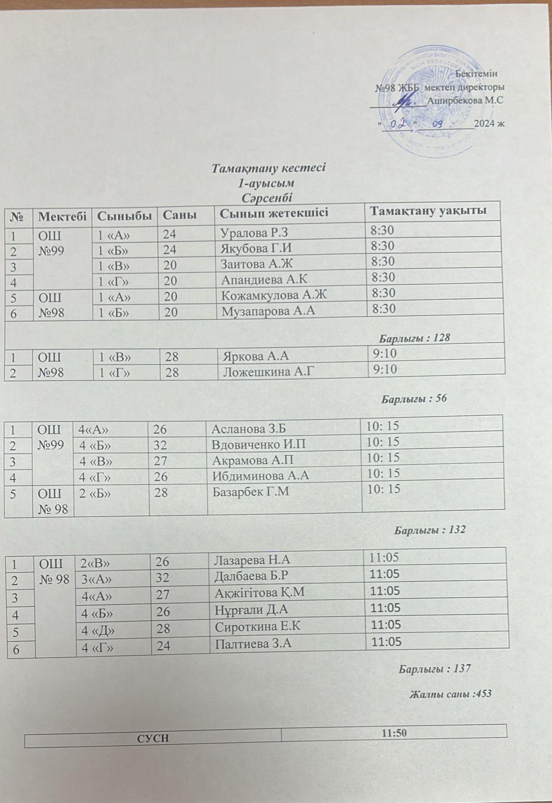 Бұйрық №77.2023-2024 оқу жылына арналған тамақтандыру ұйымдастыру туралы.