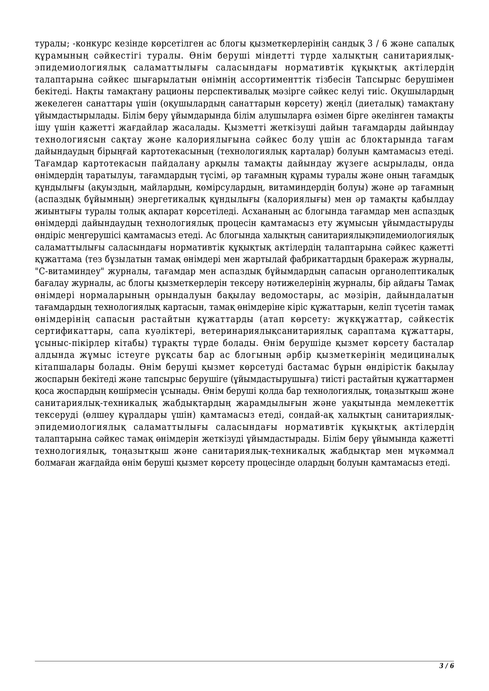 » Жеткізушіні таңдау жөніндегіконкурстық құжаттамаға техникалық тапсырма