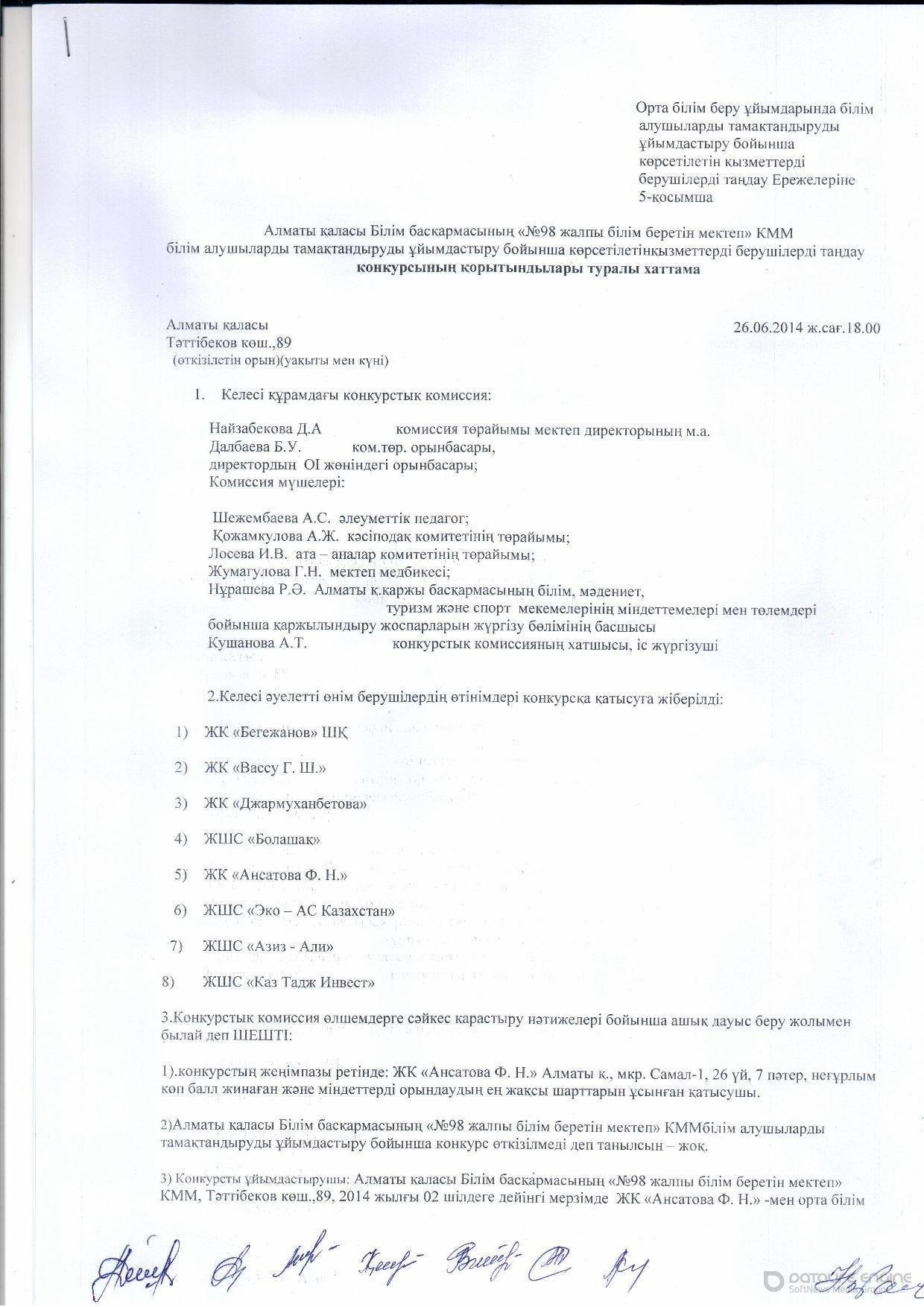 30 июнь 2014 0 1 2 3 4 5 Таңдау конкурсынын қорытындысы туралы хаттама Itogi-konk.kaz.pdf [263,2 Kb] (cкачиваний: 443) Посмотреть онлайн файл: Itogi-konk.kaz.pdf